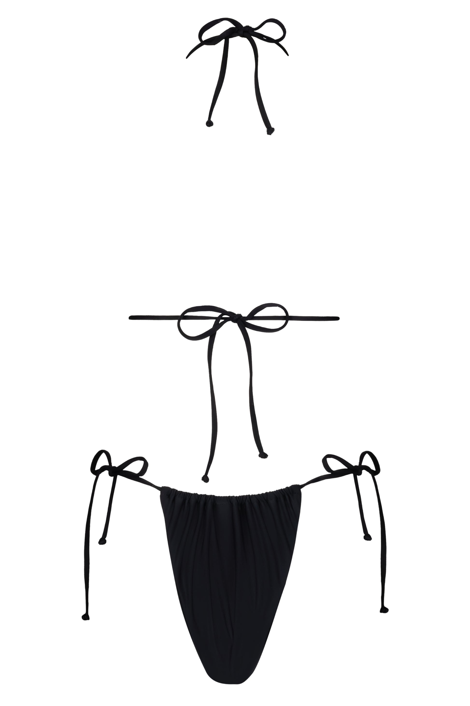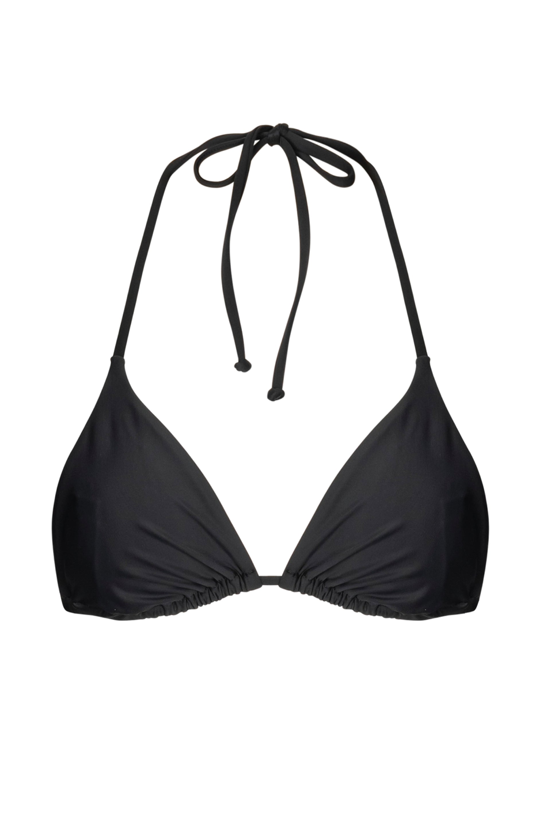 A classic staple of the Vitals collection, the Jolie Triangle Bikini Top features adjustable tunnel ties and triangle design for customizing fit. This super soft and basic bra is sustainable using upcycled fabric. It is featured in solid black noir of the essential Vitals collection.