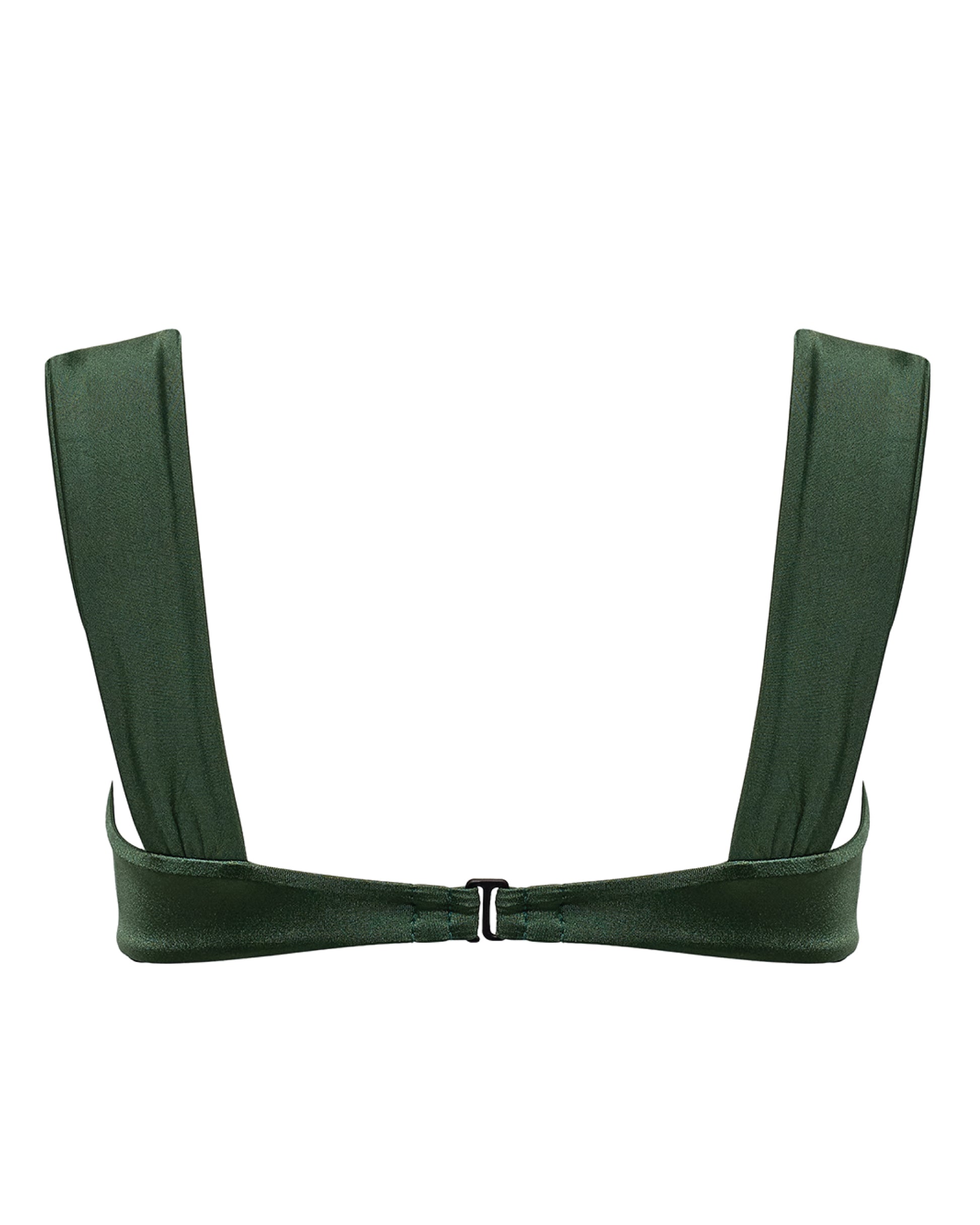 VYB Swim's new Frankie Underwire Bikini Top has removable soft cups and clasps around back. This bra has supportive and enhancing underwire that lifts and accentuates. It has flattering, wide over-the-shoulder straps. The Frankie is featured in our super soft shine fabric from the Butter Up collection.