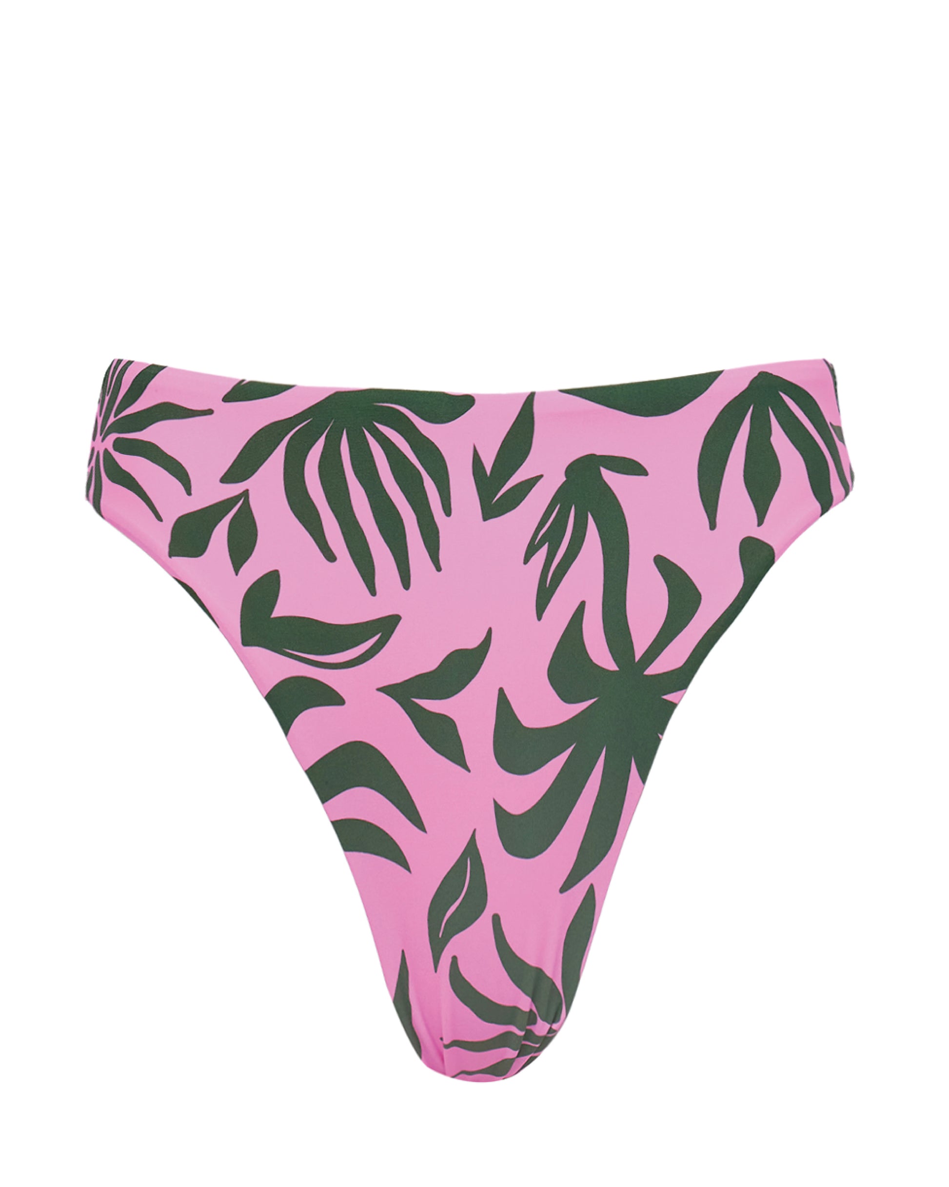 The new Gianna High Waist Cheeky Bikini Bottom features a retro look with a high waistline and high cut leg coverage. This silhouette has less coverage than the best selling kimmy bottom. It offers a secure fit and super soft, stretchy tropical print fabric from the Shady Palms collection.